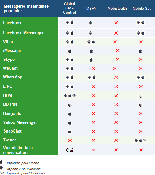 Des résultats plus détaillés seront publiés dans les prochains jours. En résumé, on peut dire que GGC reste, objectivement et scientifiquement, le logiciel présentant le plus de possibilités en matière de contrôle de messagerie instantanée (Facebook, Viber, WhatsApp, Skype, iMessage, BBM, PIN, Wechat, Hangouts, Yahoo Messenger, Snapchat et LINE). Alors n’hésitez pas à vous rendre à notre page d’accueil principale pour découvrir tout ce que peut faire pour vous Global GSM Control !